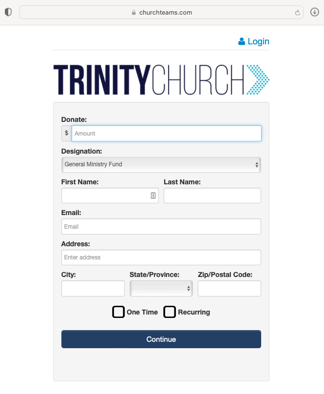 1. Click the button below to open the Churchteams Giving Form